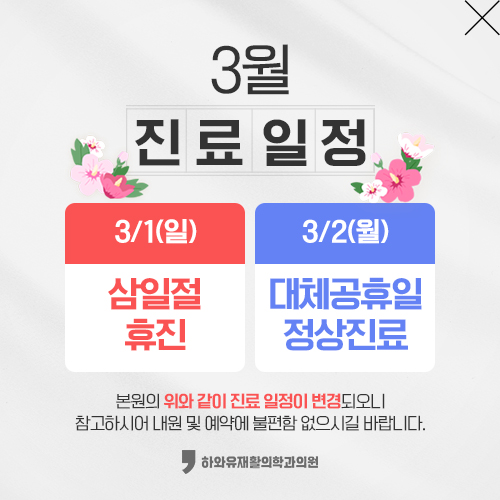 하와유 재활의학과를 찾아주시는 모든 환자분들이 건강한 몸,